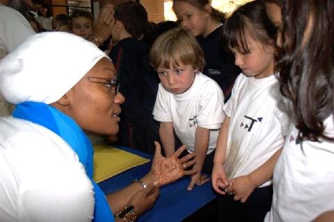 Amritpal Kaur captures the attention of some of the children after leading them in celestial communication.