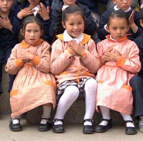 Three beautiful children from Ciudad Bolivar listening to the Guru Gaytri Mantra