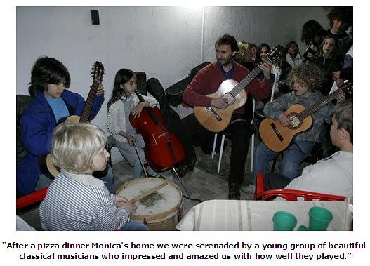 That evening we were treated to wonderful barbeque of grilled pizza in the home of Monica and her family who is another Kundalini Yoga teacher in Cordoba.  None of us on the tour every saw pizza prepared this way where it was cooked on an improvised barbeque. It was wonderful. The large group of friends and family of the sangat came for dinner and serenaded us with classical and folkloric music as well as dance. They can really do the Samba! The real treat of the evening was watching the young children of 10 years old serenade us with cello and classic guitar.