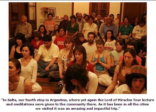 The following day we conducted interviews for television, radio and newspaper. The response was overwhelming, the people were enthusiastic and the results showed in the amount of people who attended the Lord of Miracles lecture that night. To a packed audience in the National Theatre of Cordoba, several hundred people learned to meditate, chanted to Guru Ram Das and listed to Gurbani Kirtan. It was a most beautiful sight.