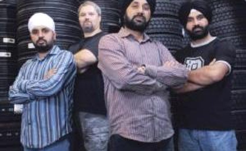 Inderjit Dhugga, CEO of New Millennium Tire Centre (foreground), and his team have made a huge impact in the truck tire market and across his adopted homeland.