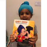 Bibek loves the illustrations and identifies with the Sikh boy Ajeet Singh – his appearance, dastar, kara. Although too young to understand the true theme of the story, he sings the shabad in the book and no child is ever too young to learn a shabad. In time, I know that this shabad will resonate with him and the gurbani themed story in Ajeet Singh will all make sense to him. Looking for the lion on each page is always exciting.