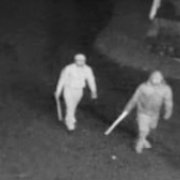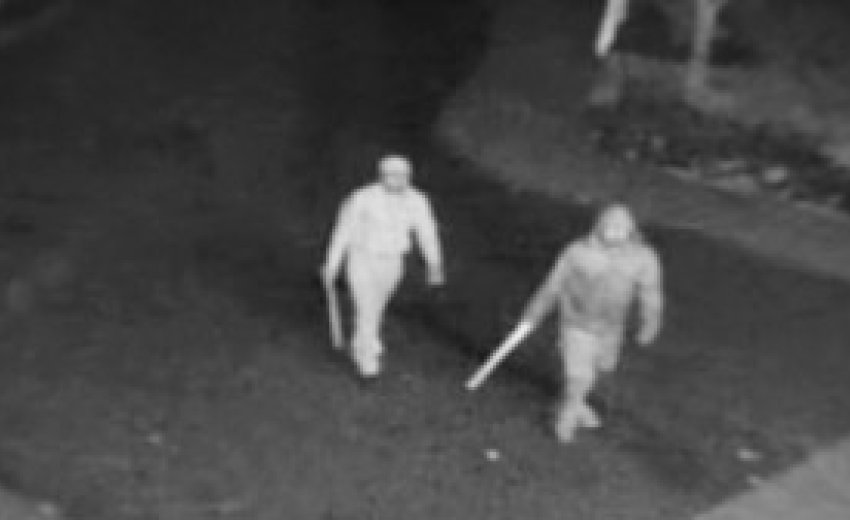 | Two men carrying bats are seen walking toward the Lakshmi Narayan Temple in Surrey in this surveillance video. Mounties are asking for help identifying the men, who are suspected of smashing the temple's windows. |