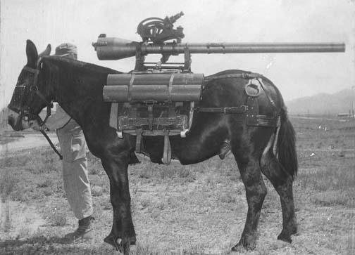 Recoilless Rifle mounted on a mule |