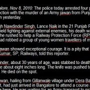 Nawdinder, about 30 years of age, was stabbed to death by miscreants with a knife with a blade about eight inches long. The knife was pushed to the hilt in the Army jawan’s chest. He died on the spot.
