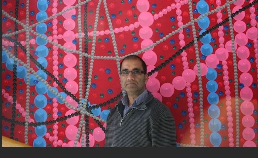 A similar change of focus took place in Western art on the verge of Modernism, when painters like Edouard Manet defined the physical presence of the paint on the canvas as the main point of the artwork. What was depicted became subordinated to the manner of depiction; painting qua painting was on its way to autonomy. When Nirmal covers his canvases with strings of pearls, he alternates between using them as ‘adornments’ to his motifs and making them into motifs in their own right. As a third alternative he employs them as abstract visual elements, as row upon row of colour patches. A highly art-historically conscious contemporary artist, he playfully juggles with various levels of representation.