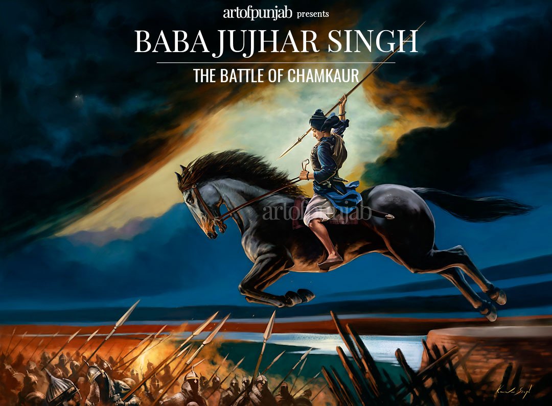 Kanwar Singh, artist of artofpunjab.com is proud to release his latest work, Baba Jujhar Singh at the Battle of Chamkaur. The artist was inspired by these last words Baba Jujhar Singh ji spoke to his father Guru Gobind Singh ji...