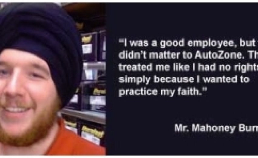 The lawsuit in this regard was filed in September 2010 by US Equal Employment Opportunity Commission (EEOC) in Boston, according to which managers of AutoZone in Massachusetts prevented Mahoney Burroughs, a Sikh convert, from wearing his turban, a religions requirement.