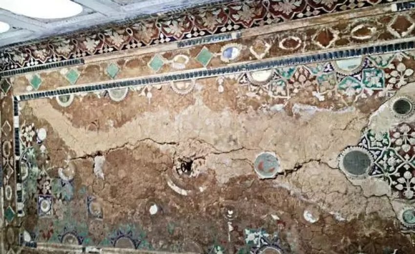 Frescoes replaced by bathroom tiles