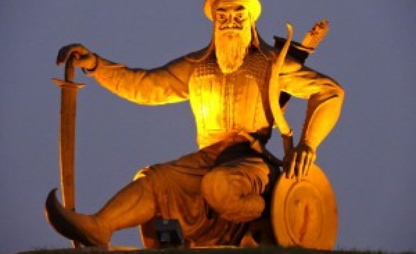 | The statue and Fateh Burj are at Chappar Chiri where Banda Singh Bahadur defeated Mughals and won Sirhind. |