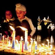 brothers and sisters light their candles one from the other. The colors