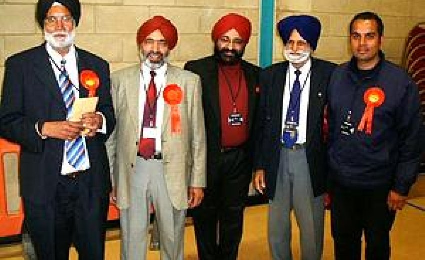 | From left to right:- Cllr Nirmal Singh Gill Secretary, Cllr Hardial Singh Rai, Cllr Amardeep Singh Jamu, Cllr Inder Singh Jamu (former mayor 1998 and Chairman of Race Equality Council), Cllr Sukhninder Singh Gill. |
