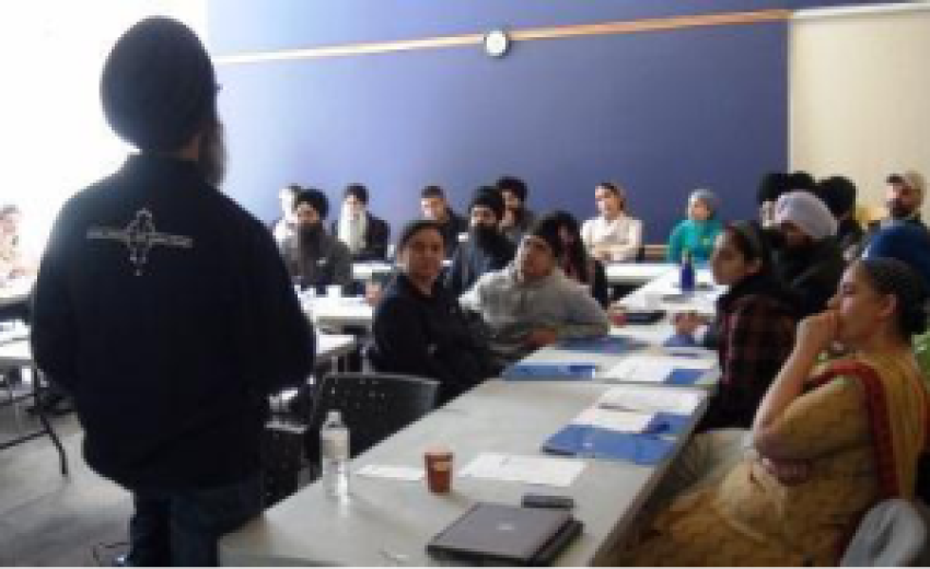 Additionally, there were other events that weekend designed especially for the Sikh community hosted by SikhRI. On 16 April, Inderpreet Singh, a member of SikhRI's Board of Directors, presented a Liv Webinar, “From Panjabi Festival to Sikh Ideals.” Later that same day, Newton Library’s multi-purpose room was packed with almost 50 attendees, who came ready to engage in an interactive community-development Saneha workshop, “Guru Khalsa Panth.” The busy day covered topics such as “Khalsa: Characterisitics and Behaviors,” “Developing Consensus the Sikh Way,” and “Gurmatta and Maryada.” The workshop was facilitated by both Harinder Singh and Inderpreet Singh.