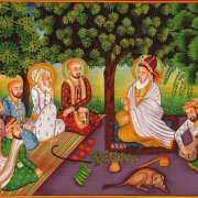 Bhagat Kabir (1398-1518), a torch- bearer of the Bhakti movement, was born at Banaras. As mystic, he is ranked among the top most well-known Bhagats of his era. He was also acknowledged a literary figure of north India. As written by Prof. Sahib Singh (Guru Granth Darpan Vol.5th page 756), Guru Nanak (1469- 1539) collected Bhagat Kabir's utterances when he visited Banaras during his first odyssey (1507-1515) as he liked them. This collection was preserved and handed it over to the successive Guru still Guru Arjan Dev included 227 padas in 17 musical measures and 237 Slokas by Bhagat Kabir in Aadi Granth. Mcauliffe writes that Guru Nanak and Bhagat Kabir met each other, but there is no evidence to prove it. Some historians think that Kabir died in 1448.