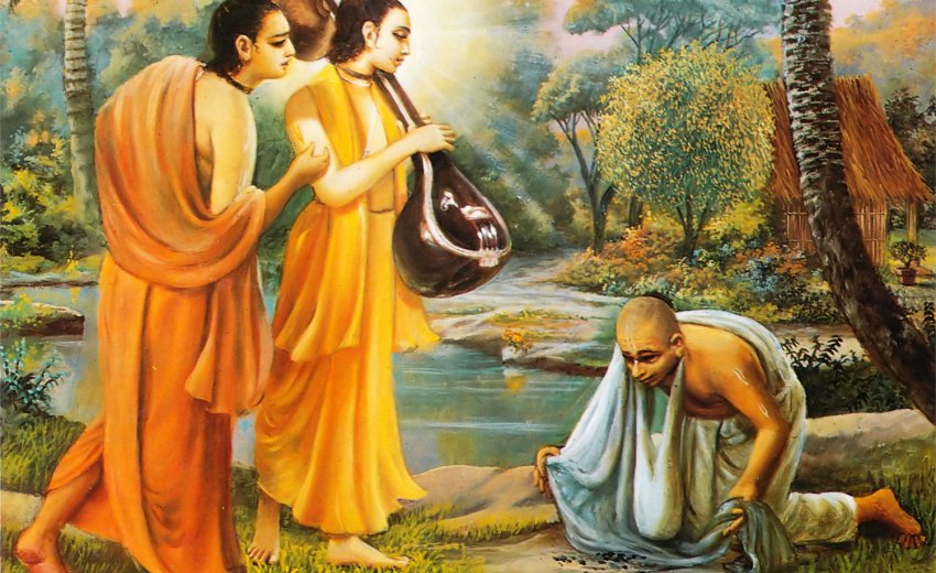 You have become very egoistic because of the many riches and palaces you possess, but you have forgotten who the Giver of all is! Your kingdom is the root of your ego; this is why Bidar is a much greater person than you. The milk in your palace is equal to the water that Bidar drinks. The spinach curry I ate was as delicious as sweet rice pudding. All night he sang the praises of the Lord, but you, all you do is slander others and listen to slander. You envy others, who are better than you!"