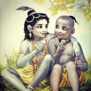 Bhagat Sudhama was one of Krishna’s best friends. He studied with Krishna at a very young age, and they remained together within and outside of school. When Sudhama went to school, his mother used to put roasted corn in his pocket, so that Sudhama could eat them when he felt hungry.
