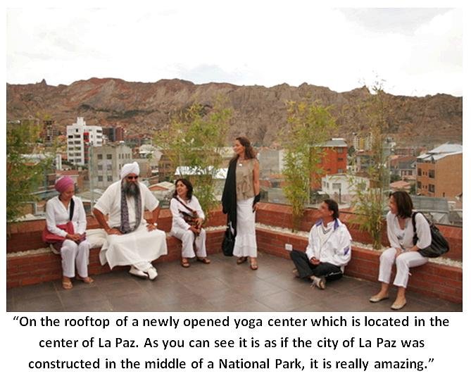 La Paz is the highest capital in the world located at 15000 feet above sea level. It is a beautiful mix of 90% indigenous and 10% European. For 6 years we have been traveling to Bolivia and even though the sangat is small, their impact is great. During our 2 day stay in Bolivia we taught yoga, danced bhangara and enjoyed great Bolivian food. We were especially delighted that Hari Jot Singh from Paraguay traveled with us.