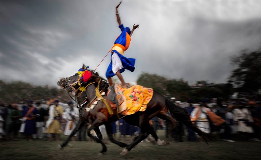 The pictures and creative briefs with each photograph, get the viewers close to these enigmatic people, be it shots of their unique traditional horsemanship, martial arts, work for the community, their life in the kitchen, their relationship with their horses, the dances, a glimpse of their personal life, camaraderie...it’s a riot of colours and emotions. What’s more, as part of the exhibition, there was breathtaking display of Shasta Vida and horsemanship by various Nihang Dals.