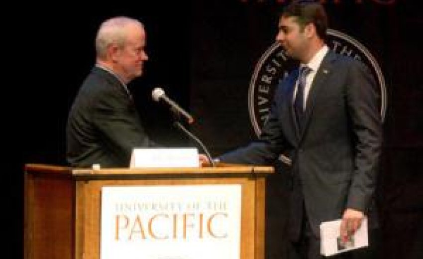 | Rep. Jerry McNerney, D-Stockton. left and GOP candidate, Ricky Gill of Lodi shake hands after their debate at the Long Theater on the campus of the University of the Pacific in Stockton, Calif. on Monday, Oct 15, 2012. The event is sponsored by the League of Women Voters. (Jim Stevens/Staff) ( JIM STEVENS ) |