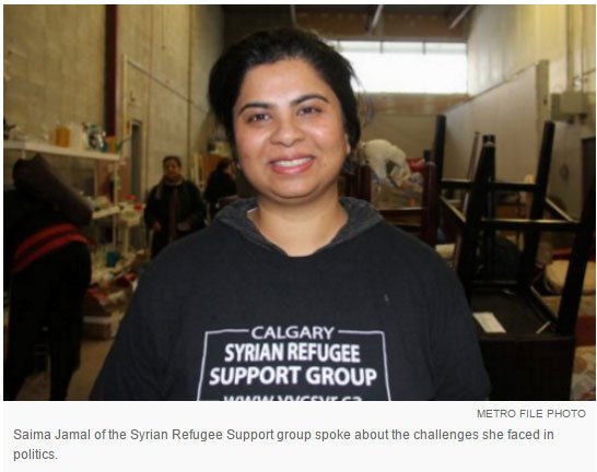 Saima Jamal is the co-founder of the Syrian Refugee Support Group and has experience in politics, having run for the Liberal Party's Calgary-Greenway nomination. She said she has experienced difficulty accessing her own faith community while campaigning.