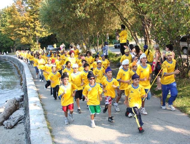 The last leg of the run just over 3 km was around the seawall in which many others participated, from the centre team, the east team and many other local children. Some parents also participated to support and encourage their children. At the conclusion of the run, the runners and supporters gathered at Lumberman’s Arch where Sandeep Singh read an address to those present on behalf of the GGSCF.