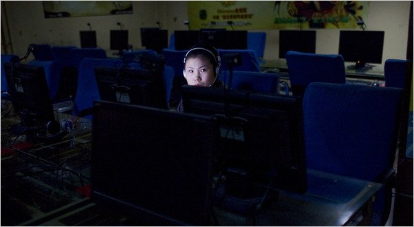 | An Internet cafe in Beijing. Some