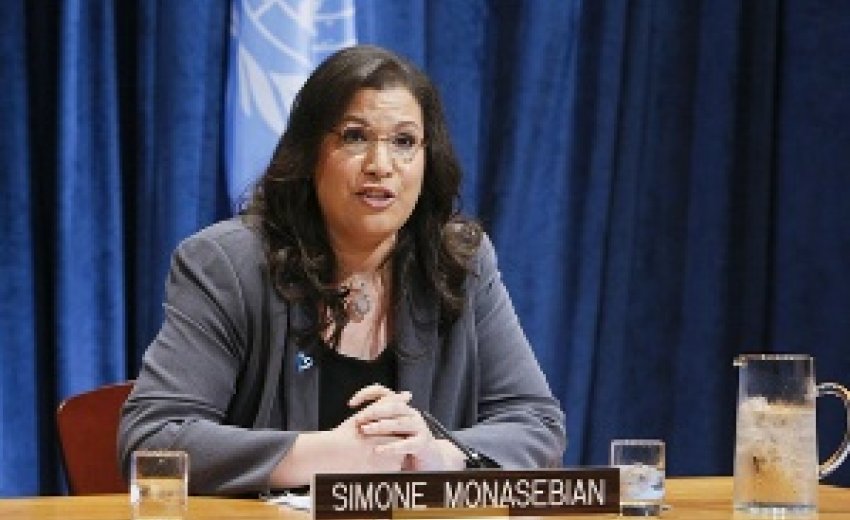 ![]() Simone Monasebian, the New York chief of the UN Office on Drugs and Crime (UNODC), moderating a press conference on the launch of the UN Trust Fund for Victims of Human Trafficking, in November 2010. (UN Photo/JC McIlwaine) |