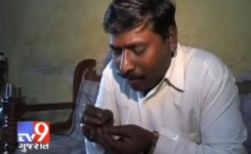 It was after practicing for a long time that he then started making portraits and symbols of Hindu, Muslim, Sikh and Christians on Rice Grains.