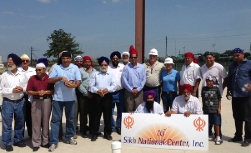 Sikh National Center, Inc. (SNC) of Houston held special Ardaas (Sikh Prayer) on Friday, August 2 at 3:15 p.m., as Turner’s Construction’s crane erected the 1st member of structural steel on its previously constructed foundation and slab. About 100 Sikhs participated in the ceremony which was held on a hot Friday afternoon. SNC had awarded a $2.3 million contract to complete the dry phase of its two story, 38,000 square feet Phase I Building (Gurdwara and Langar Hall). The first step for this unique religious project was to prepare the hundreds of steel fabrication drawings and then custom cut hundreds of steel members. All the members were marked to fit in their places in the big puzzle on site, as designed by SNC’s structural engineers. Once hundreds of these unique pieces were hauled by truck to SNC’s site, Turner was ready to erect them all, one by one, as it did the first one on August 2.