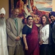 From left to right: Satpal Singh Kohli, Mayor David Coss, Consul General Thomas, Carol Coss, Pawan Singh Dhindsa. The Siri Singh Sahib brought Kundalini Yoga and Sikh Dharma to the United States in the late 1960’s and early 70’s. In his later years, the Siri Singh Sahib made New Mexico his primary home. Many Kundalini Yoga students from around the world adopted the Sikh faith due to the outreach of the Siri Singh Sahib. It was through his efforts that Sikh Dharma was officially recognized as a religion in the United States in 1971. Members from the Sikh community founded by the Siri Singh Sahib in the West welcomed the Consul General to New Mexico. These included Daya Singh Khalsa, CEO and President of Akal Security; MSS Hari Jiwan Singh Khalsa, Chief of Protocol; SS Ek Ong Kaar Kaur Khalsa, Creative Director for Sikh Dharma International; Sat Kaur Khalsa from Canada; and Uttampreet Kaur from Bolivia. |