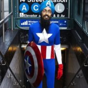 Vish ratcheted up his activism in 2012, after a white supremacist murdered six Sikh worshippers at a temple in Wisconsin. He created a poster of his turbaned cartoon character as Captain America to make the obvious point: A Sikh is just as American as an iconic American superhero. It got a lot of attention and then he was persuaded to spend a day in New York City dressed up as Captain America.