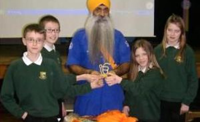 Head of religious education Gill Baker said: “Arriving in full Sikh costume, Roop made a colourful entry, before giving a very entertaining and informative presentation about his religion through his own life story. He explained the significance of his costume, with particular reference to the special place the turban has in his faith.