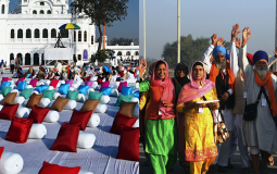 In pictures: Pakistan welcomes scores of Sikh pilgrims to Gurdwara Darbar Sahib in landmark ceremony