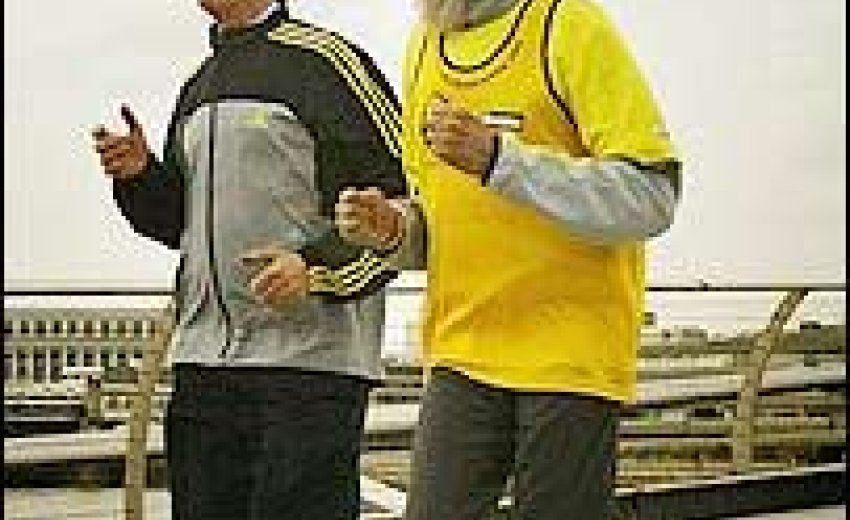 Ginger curry and copious amounts of tea, he says. Attitude counts–so do the 10 miles he logs daily.