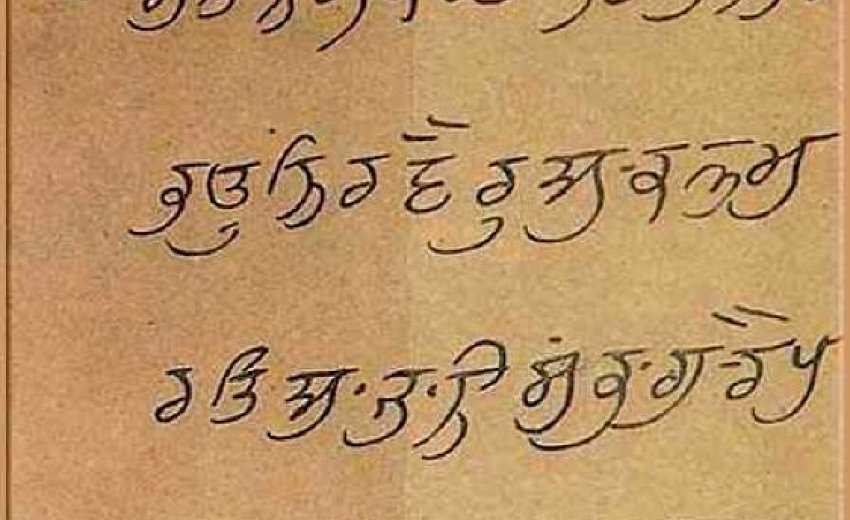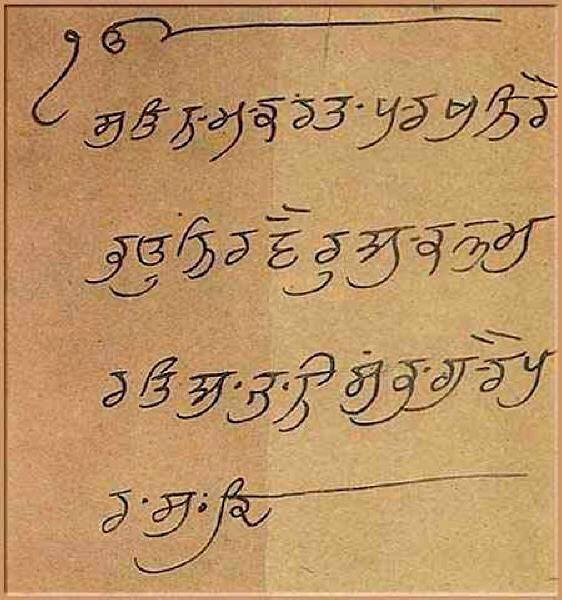 Mool Mantra on a Manuscript written by Guru Hargobind which is on display in Central Sikh Museum