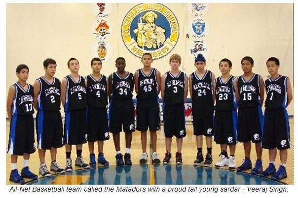 LOS ANGELES – Veeraj Singh, very proudly invited his entire basketball team to witness his Dastar Bandi (first time tying a Sikh turban) ceremony recently.   This 6-foot tall, 14 year old, handsome Sikh, has made great strides in the Basketball court.  He regularly plays inter-city and inter-state tournaments. He also excels academically and was recently accepted in the Sunny Hills High School International Baccalaureate Program, which would challenge his passion for sports!  He presently attends Parks Junior High School, in Fullerton California. He has played on an All-Net Basketball team for the past 5 years. Called the Matadors, they were the 8th grade National Champions 2009 for the National Junior Basketball (NJB). Veeraj also volunteers for America India Foundation Junior Club, which raises money for the less fortunate kids in India.