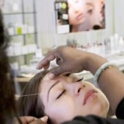 At the downtown Macy's Plaza, Kaur settled into an empty seat at the threading kiosk.