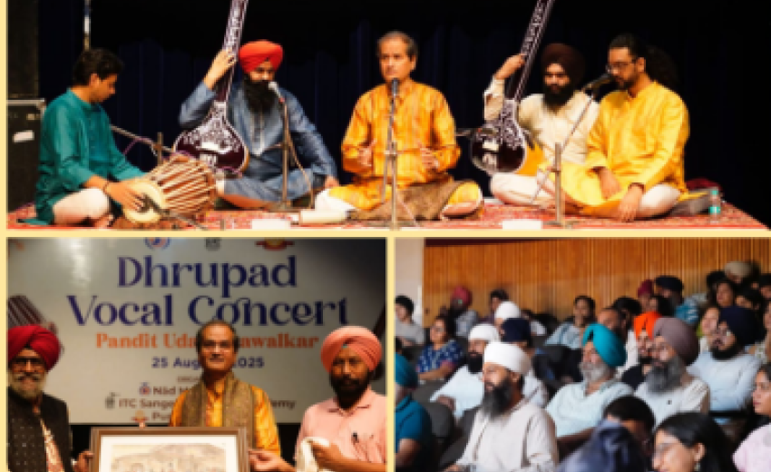A Dhrupad Music Workshop followed by a Vocal Concert featuring Pandit Uday Bhawalkar, an advocate of the Dhrupad genre and a classical vocalist in the Dagar tradition of 20 generations, took place from August 23 to 25, 2025. Presented by the Nad Music Institution, ITC Sangeet Research Academy, and Punjab Arts Council at Punjab Kala Bhawan in Chandigarh, the event reflected their collaborative efforts at promoting the preservation of ancient musical traditions coupled with Gurbani Kirtan.