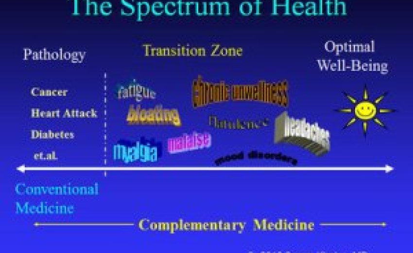 Doctors who practice this way realize that health is on a "spectrum." At one end, we have optimal well-being. At the other end, we have chronic disease, including cancer, heart disease and diabetes that we see so much in our society. What they have not told us in conventional medical school is that there is a "gray zone" in the middle, where organs are not sick or diseased yet. In the gray zone, organs get weakened, rundown, stressed, or toxic, and we realize that they are "dysfunctioning" but not yet diseased.