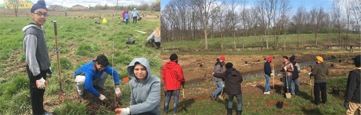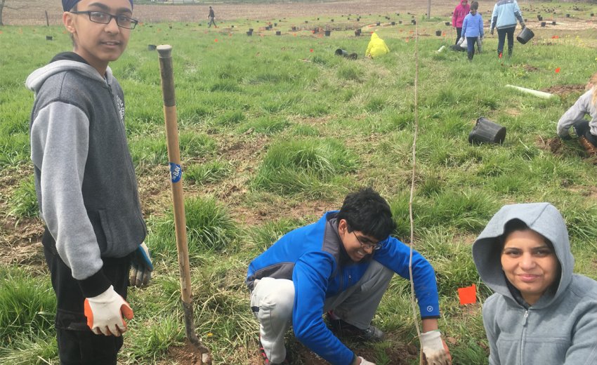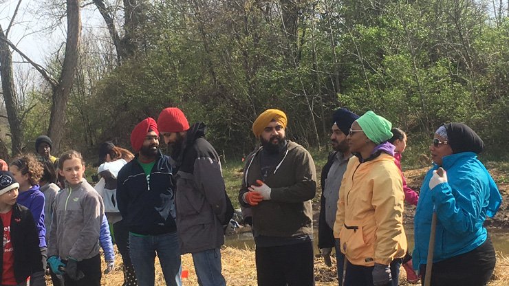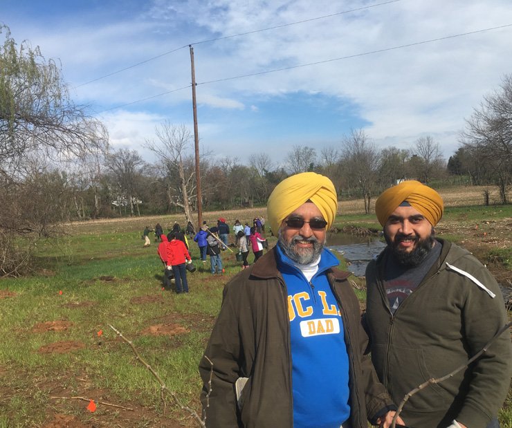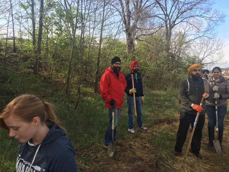 Washington, D.C. April 25, 2015 - 25 EcoSikh volunteers took part in the “Tree plantation Sewa” at Little Tuscarora Creek, in Frederick, Maryland, a suburb of Washington, DC. EcoSikh joined Chesapeake Bay Foundation planting 1,100 trees and shrubs around the Creek to restore the stream system as well as trout fish. Even though, the weather was windy and cloudy with chances of snow, 50 volunteers from various groups across the Washington metro area joined in this effort.