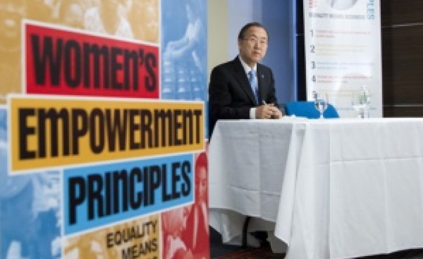 | Secretary-General Ban Ki-moon delivers the closing remarks at the Fifth Annual Women's Empowerment Principles Event, co-hosted by the UN Global Compact and UN Women, in observance of International Women’s Day. (UN Photo/Rick Bajornas) |