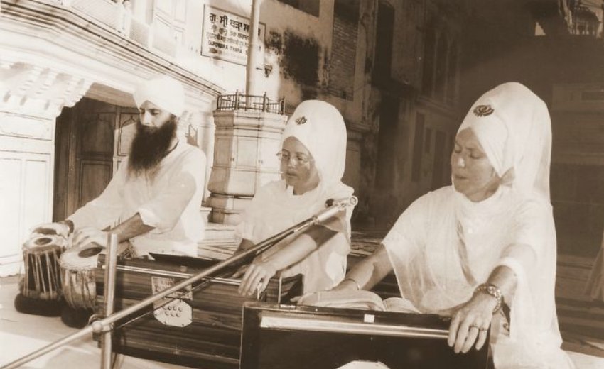 We of the Guru Ram Das Ashram [in Los Angeles, CA] did work for changes at the Golden Temple in Amritsar, changes that would give Sikh women more equality there. In fact, I believe I was the first woman to play kīrtan there, on my harmonium, at an akand path for Yogi Bhajan in 1982. We were there [at the Golden Temple], our kīrtan group from Los Angeles, and there was the bhog, and then to complete the cycle the rāgīs should play. One of our people [Vikram Singh] nodded to me, inviting me to play; and I was aware that local practice did not sanction that but I was ready. And just as I was about to begin, I saw the Punjabi Sikh man, the leader there, get up to object, but just then a beautiful Sikh, Baba Nihal Singh, walked in the door and smiled at everyone, smiled at me as I sat to play. So I played. (Interview courtesy Dr. Karen Leonard and Ben Caldwell Forthcoming