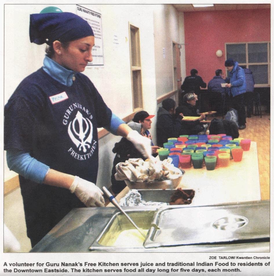 Since November 2007, the Sikh community has united for five days every month to serve free traditional Indian food in the Downtown East- side, and now they offer take-out on Sundays as well.