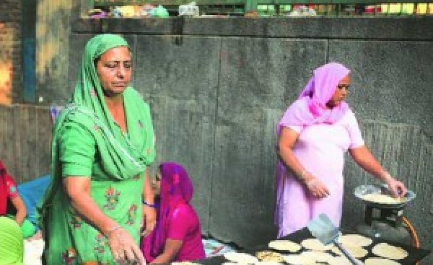 On the second day of the three-day prayers, held annually for the riots’ victims, women of the locality gather near the gurdwara and prepare a bhog for the concluding day.