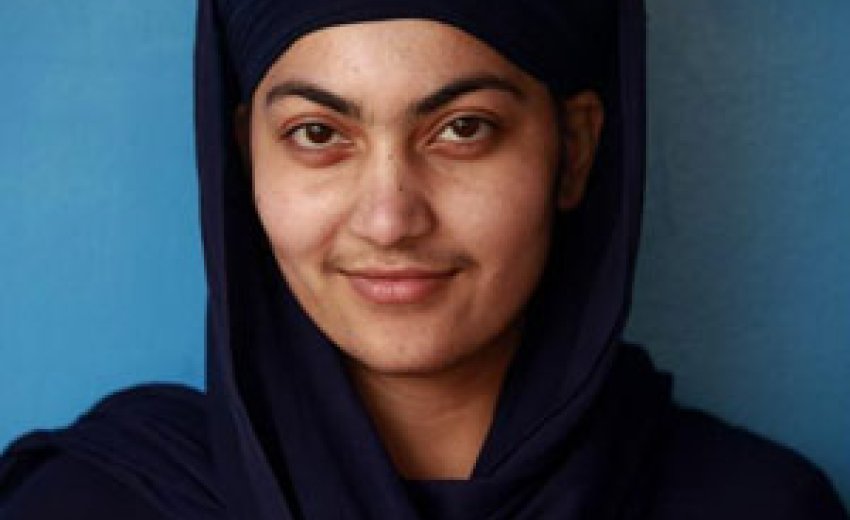 | Inderpal Kaur, 21, wears a turban every day to show her spiritual devotion and to identify herself as a Sikh. Kaur can put on her turban in about 5 minutes, she says, "Unless I am having a bad turban day." |