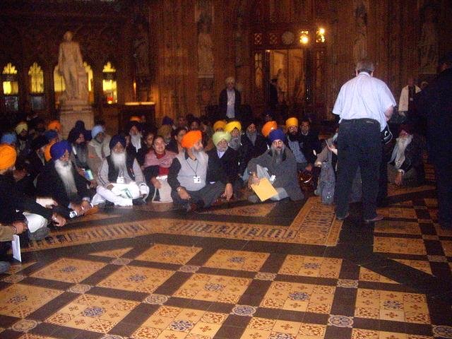 The 10-minute sit down protest that came at the end of the lobby involved around 70 Sikhs sitting down in a silent protest in the Central Lobby - the core of the Palace of Westminster. It is a large octagonal hall that connects the Lords and the Commons lobbies as well as other corridors of the House with an intricately tiled floor. The sit down protest by Sikhs was on the large tiled star in the centre of the hall that can be seen in the photo.