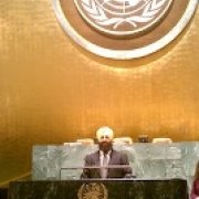 jatindersingh-un (42K)A flag ceremony followed the prayers, with flags of UN members being presented with a heart-warming welcome and blessing of peace upon each country.