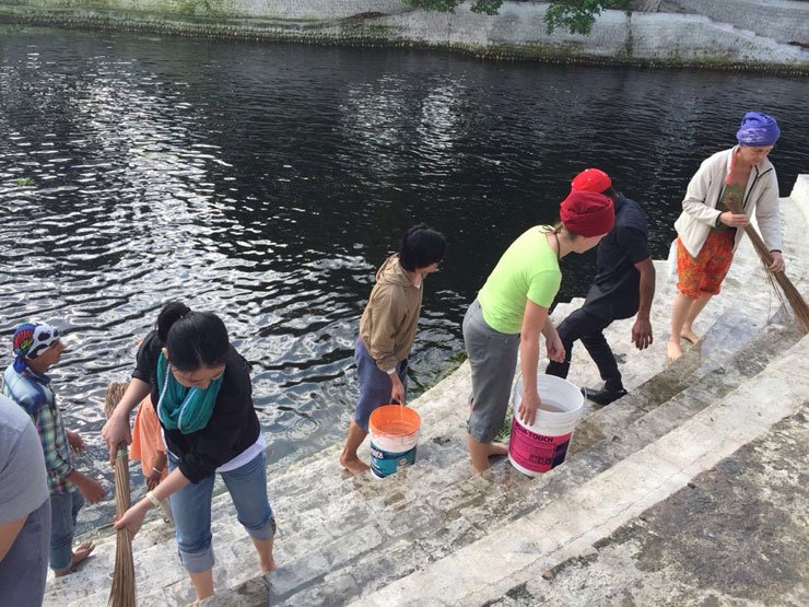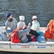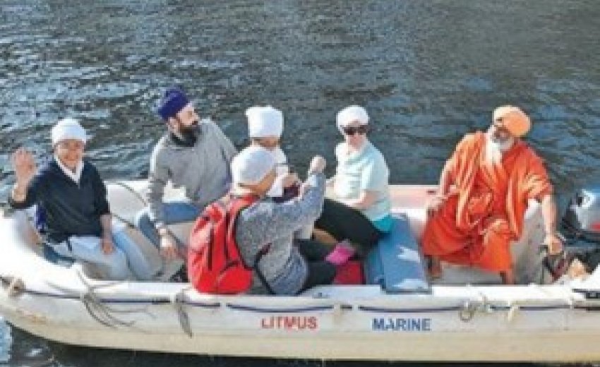 14 March 2016 - Kapurthala: Twenty five-member delegation from eight countries on Sunday visited holy Kali Bein in Sultanpur Lodhi. They felt proud after taking a dip in the Kali Bein and felt a peace of mind at supreme level. These foreign Sikh nationals have arrived here under the leadership of Satmukh Singh from France and Dharnjot Kaur of China. Rest of them hailrd from Australia, New Zealand, Hongkong, Taiwan and Egypt. They took a round of Kali Bein in a boat with environmentalist Baba Balbir Singh Seechewal who narrated the whole story of 16 years of perseverance and hard work to clean the Kali Bein.