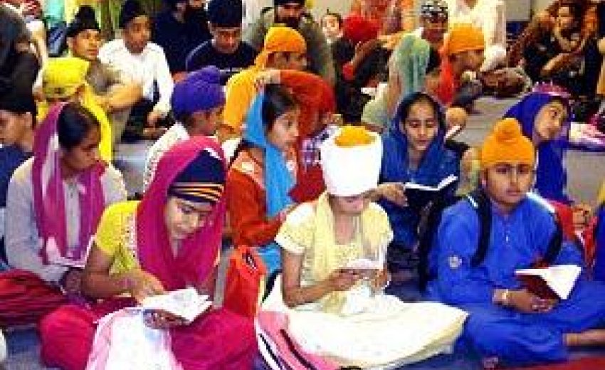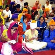 Evening Diwaan. Children getting ready to recite Rehraas Sahib.