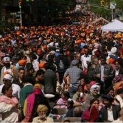 Dave and Maxine Clark were feasting at the parade during a visit from their home in Sacramento. “I think they’re working hard to teach people what they are and what they are not,” Ms. Clark said. Some Sikhs were handing out fliers titled, “Five facts you may not have known about Sikhism!” (Fact No. 4: “Sikhism, Hinduism and Islam are all distinct religions with many different beliefs.”)